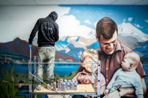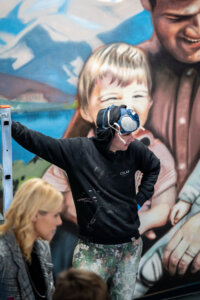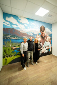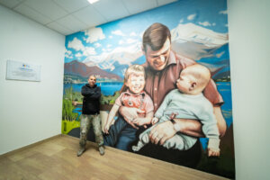 L’affresco contemporaneo, realizzato in uno dei luoghi di vita della Fondazione, è il risultato di un percorso di dialogo e ascolto tra l’artista, gli operatori e le famiglie. L’opera intreccia volti, mani e sguardi in un racconto visivo che rappresenta la rete di relazioni costruita in questi anni. Sullo sfondo, un ampio panorama di Varese diventa metafora del profondo legame tra la Fondazione e il territorio.