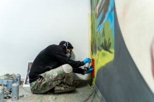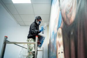 “Ho voluto costruire un’immagine che non si limitasse a rappresentare, ma che contenesse il movimento e la traccia viva delle persone che attraversano ogni giorno questo luogo. Il muro diventa superficie d’incontro: tra dentro e fuori, tra arte e vita reale. Ogni pennellata è una relazione, un frammento di umanità che si ricompone in un disegno più grande.”